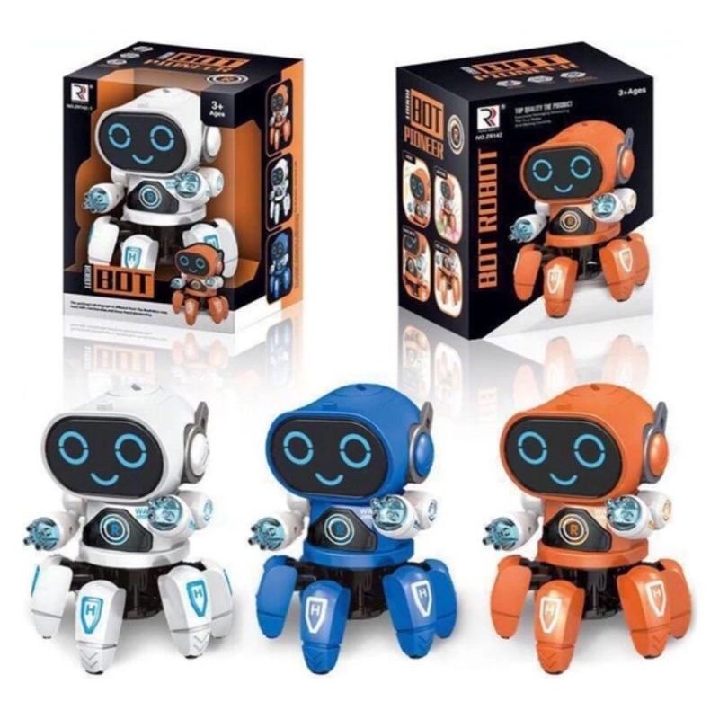 Mainan bot robot pioneer dancing octopus lampu led dan musik ZR142