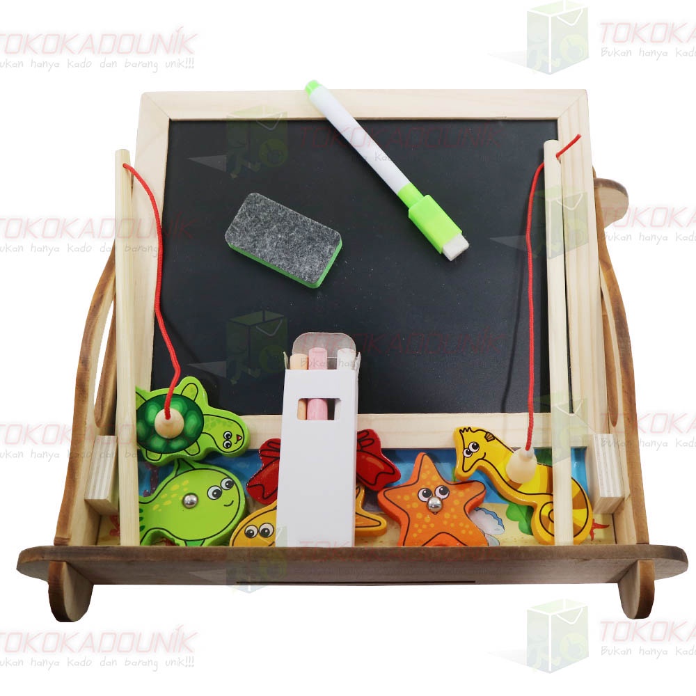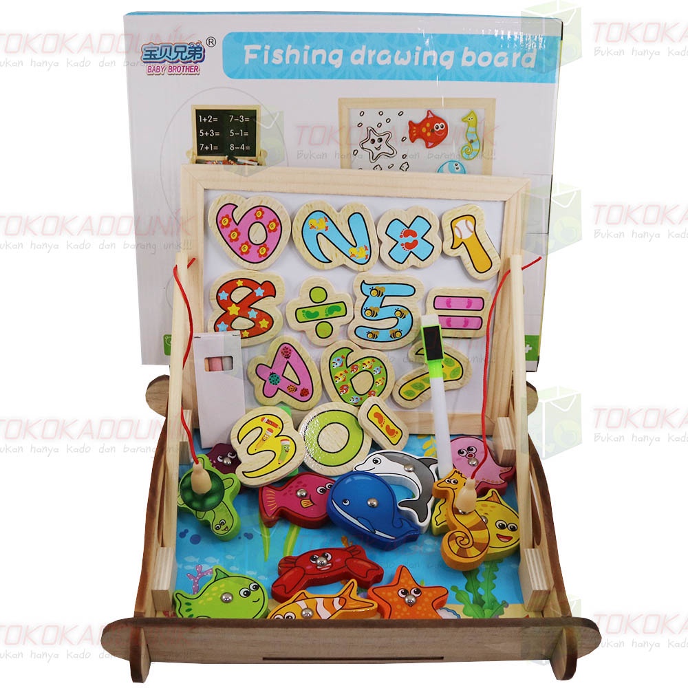 Mainan edukasi Anak / Alat Bantu Belajar Anak - Mainan Kayu Papan Tulis Gambar Bermain pancing Huruf, Angka dan pertambahan, perkalian, pembagian, pengurangan