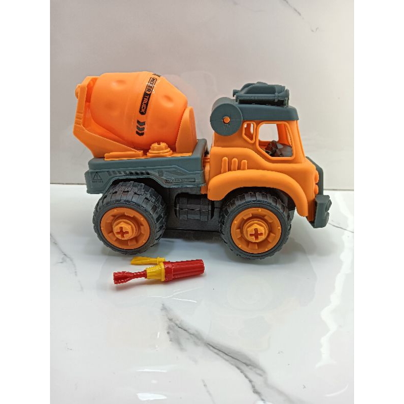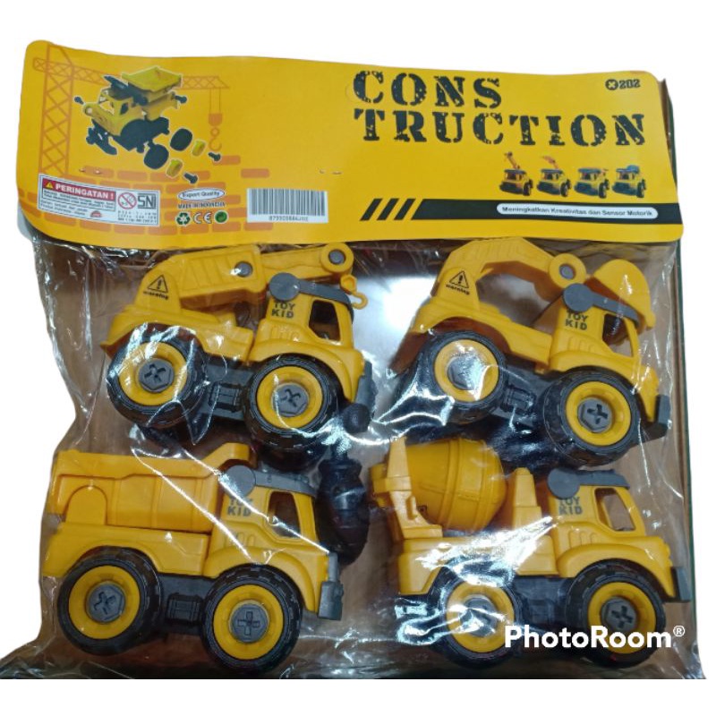 Mainan edukasi anak DIY mobil truck konstruksi 4 jenis mobil bisa dibongkar pasang