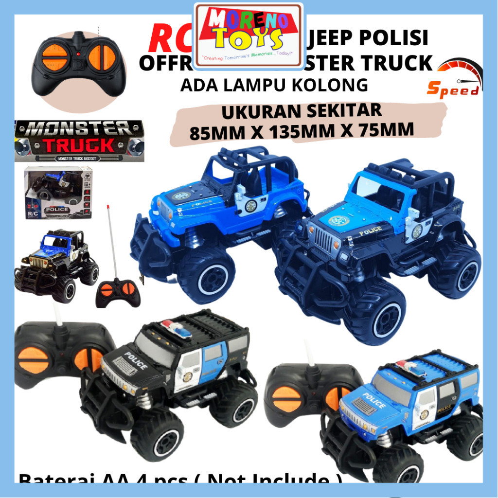 Mainan mobil remote control Jeep Polisi bentuk Unik Rc Car Truck Mobil Rock Crawler Mini Climber 1:43 SNI