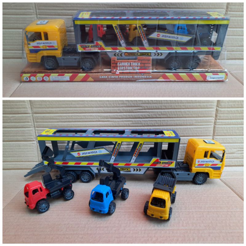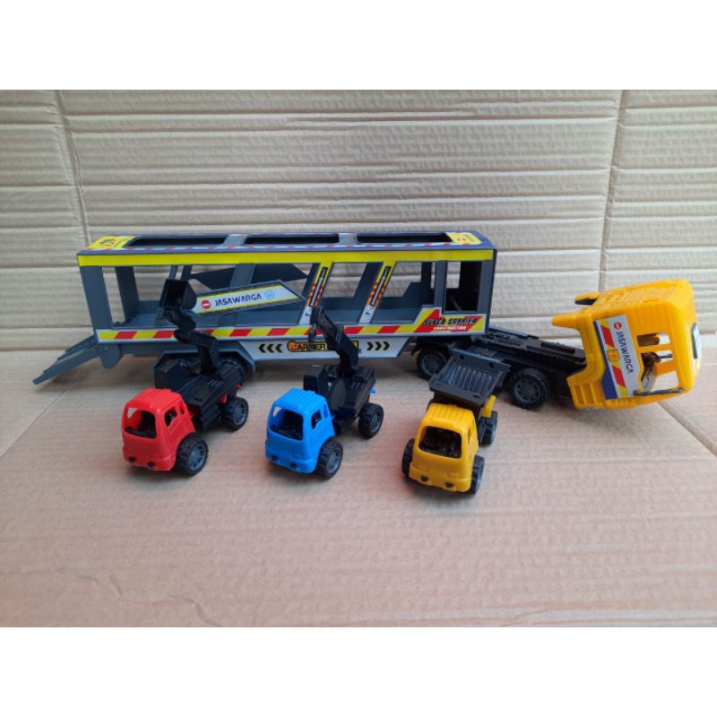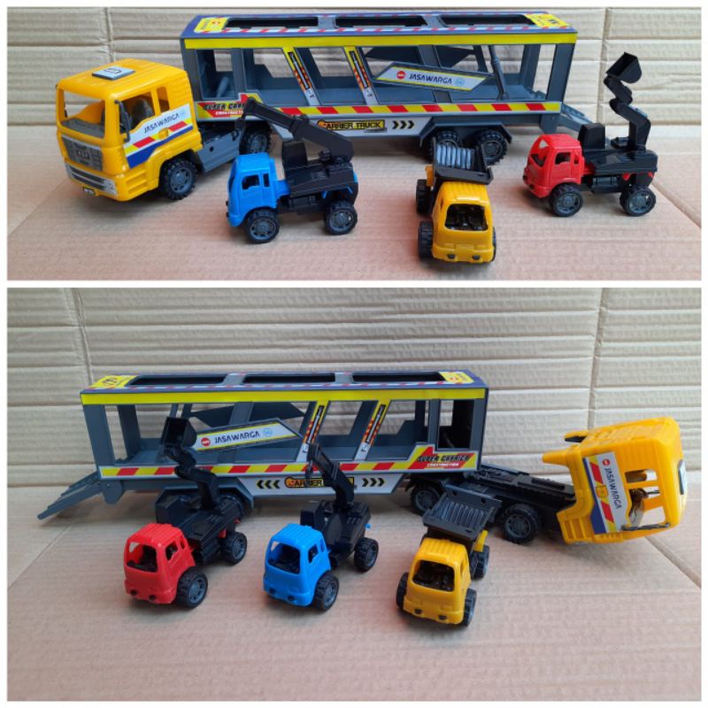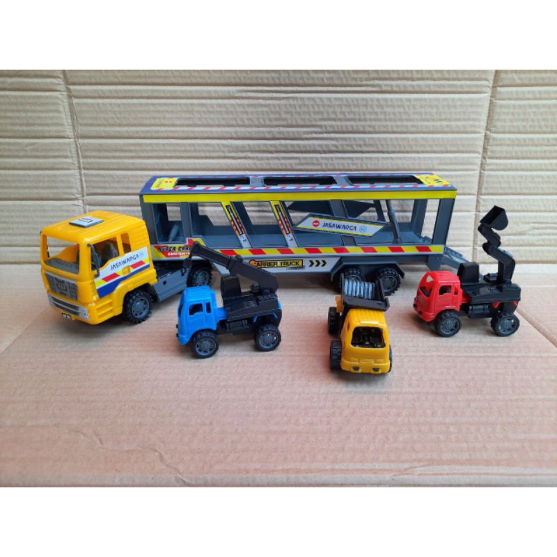 Mainan mobil truck hauler angkut konstruksi kontainer trailer crane excavator dump truk mobilan