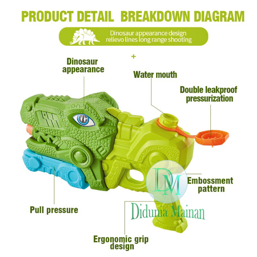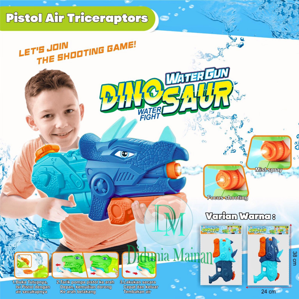 Mainan olahraga anak pistol air pompa water gun dinosaurus t rex dino triceratops