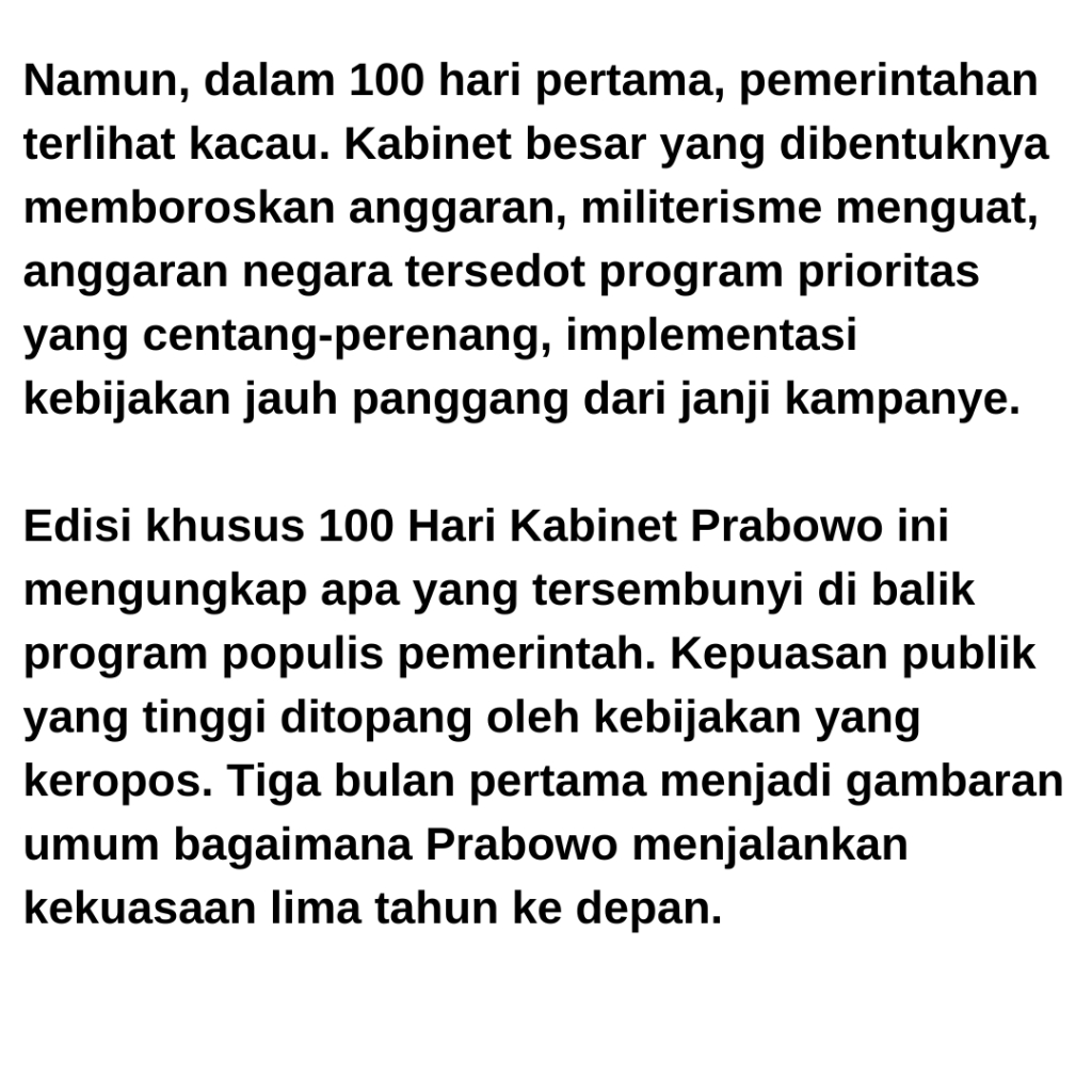 Majalah Tempo Edisi Khusus "100 Hari Prabowo - Gibran" Tanggal 3 Februari 2025