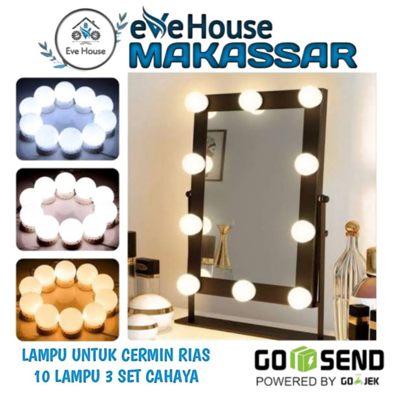 Makassar V183 Lampu cermin rias 10 bola lampu dengan 3 mode pencahayaan lampu make up lampu kaca rias