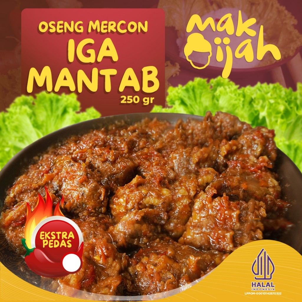 Makijah Oseng Mercon Iga Sapi 250 Gr Rasa Premium, Iga Sapi Empuk Bumbu Meresap, Siap Saji Praktis