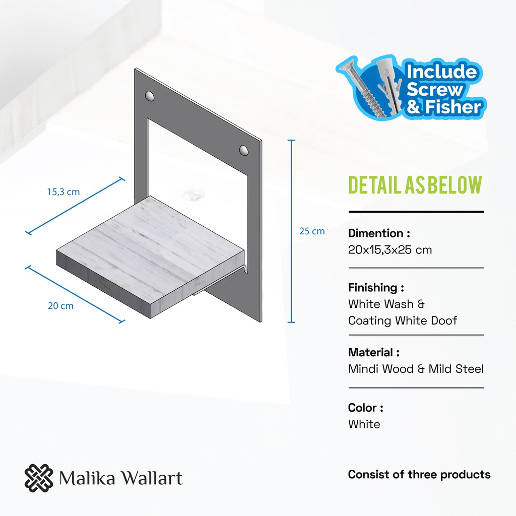 Rak Dinding Tanaman Hias' Kayu dan Besi Serbaguna Susun 3