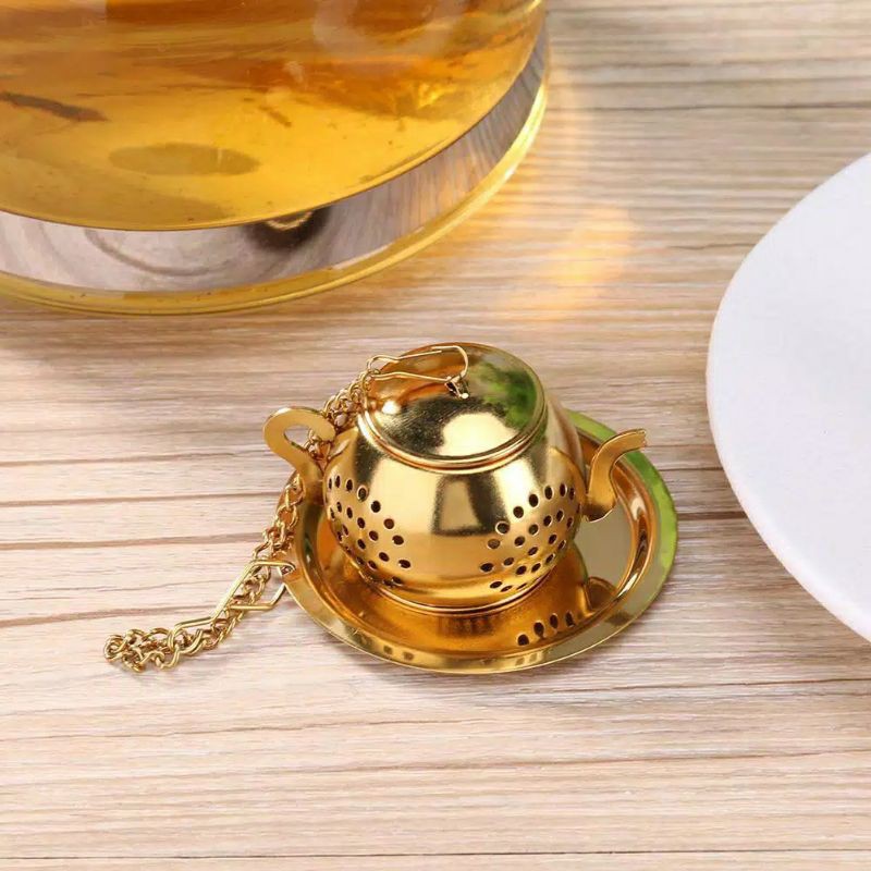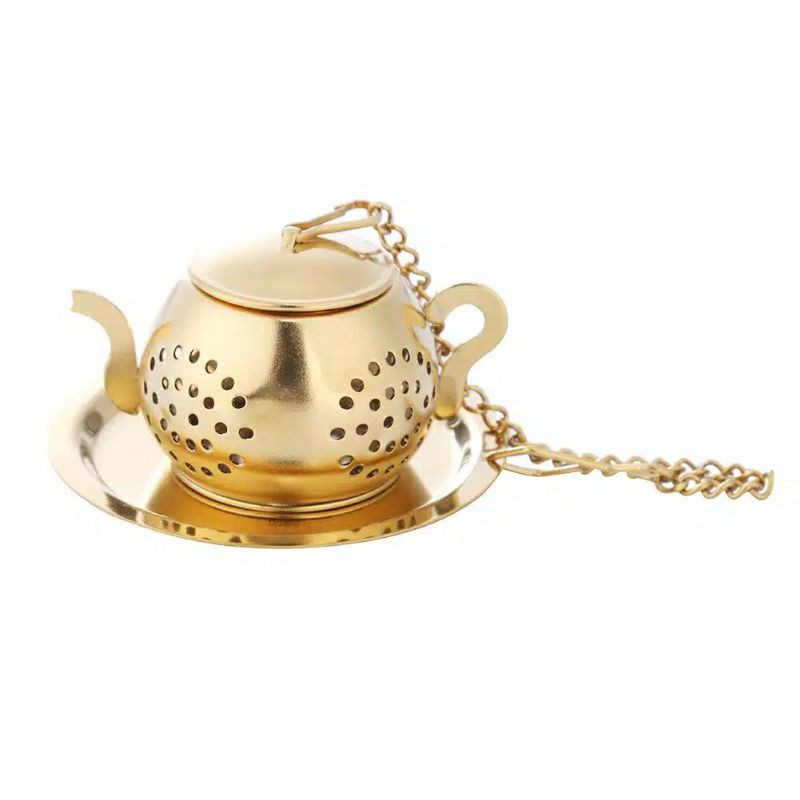 Mamacia Treats Saringan Teh Gold Bentuk Teapot / Tea Strainer