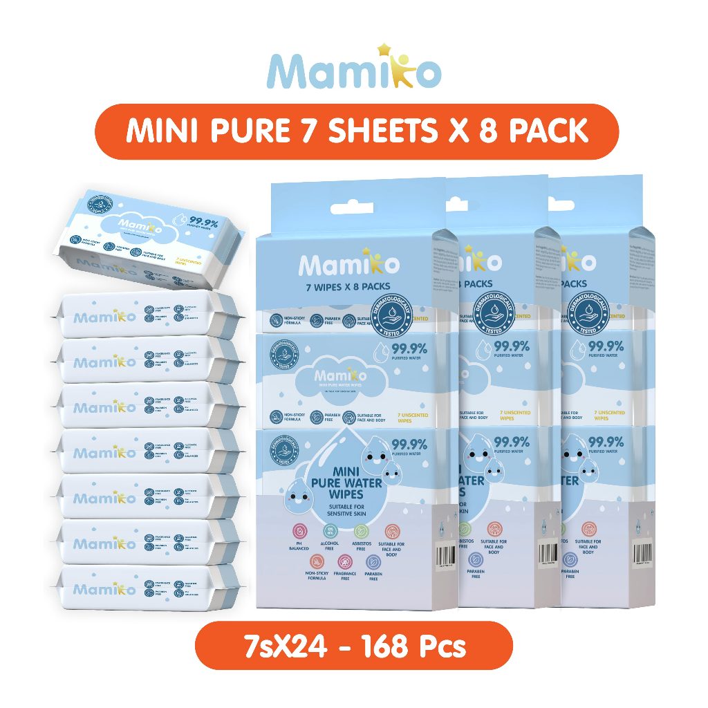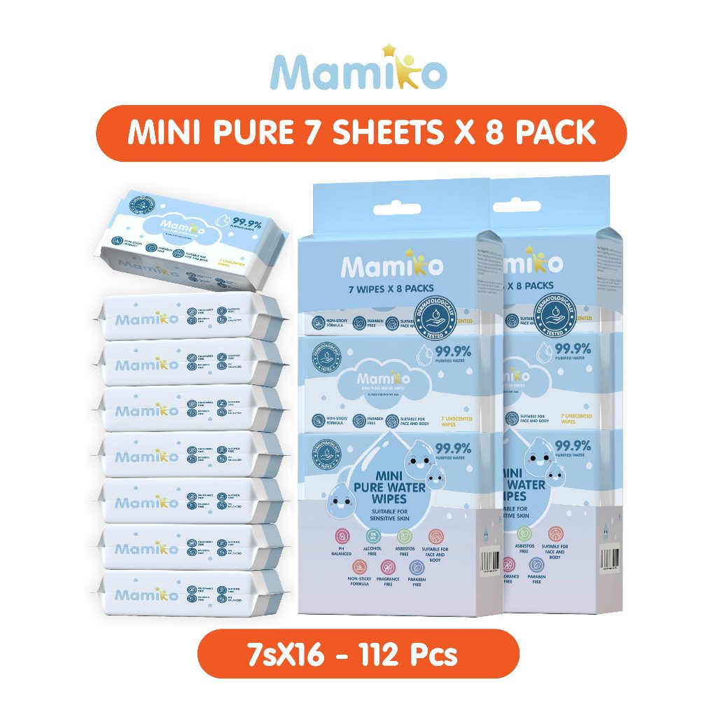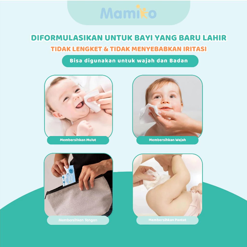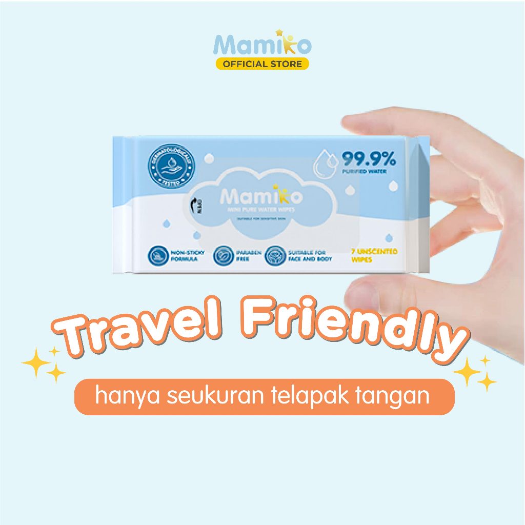 Mamiko Tisu Basah Mini Bayi 8 Pack isi 8 Pcs - Baby Wet Wipes Travel Size - Tissue Basah Mini Bayi