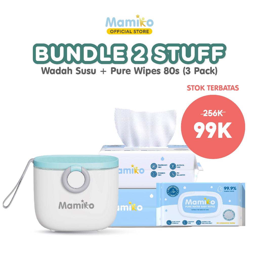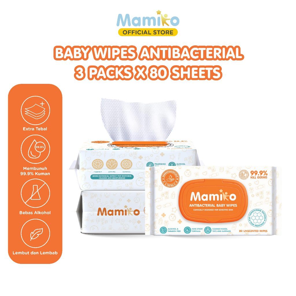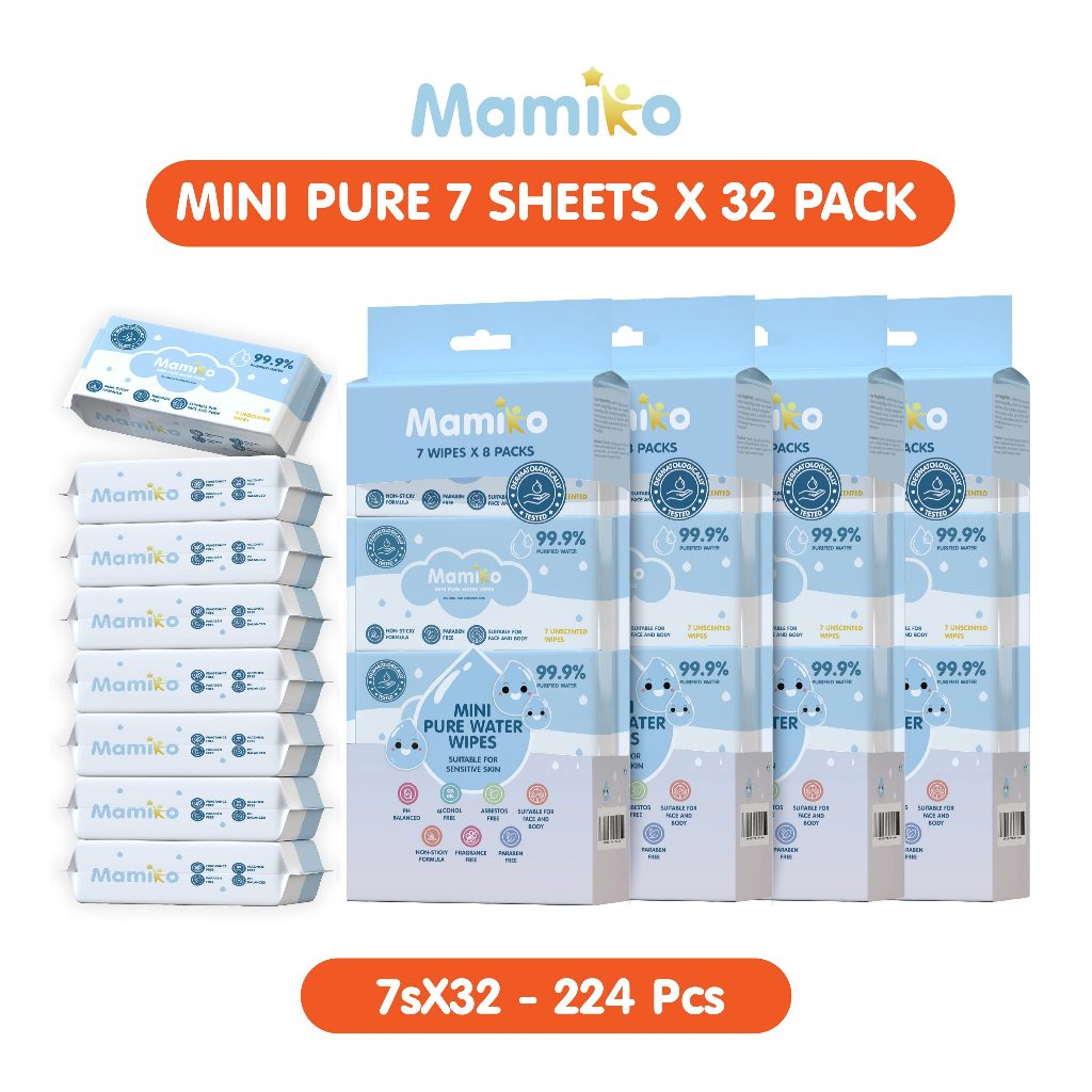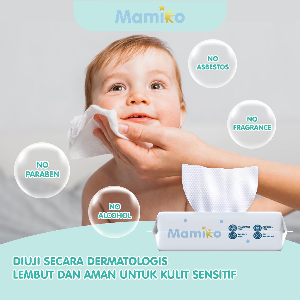 Mamiko Tisu Basah Mini Bayi 8 Pack isi 8 Pcs - Baby Wet Wipes Travel Size - Tissue Basah Mini Bayi