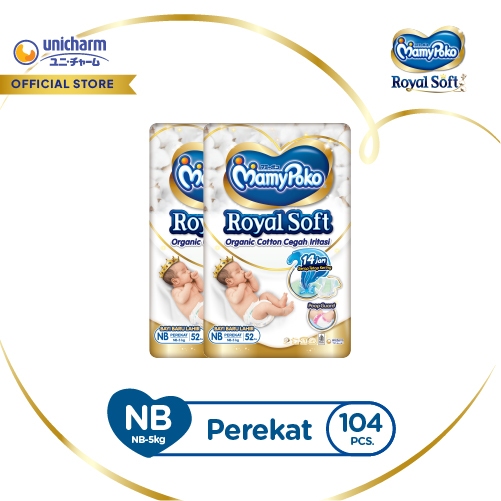 MamyPoko Royal Soft Organic Cotton - NB 52 - Popok Perekat NewBorn Bayi Baru Lahir - 2 Packs