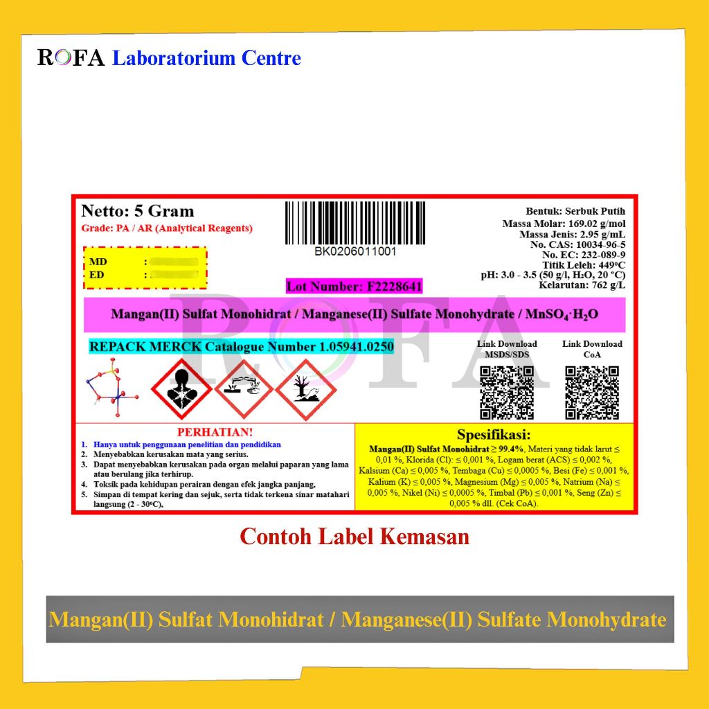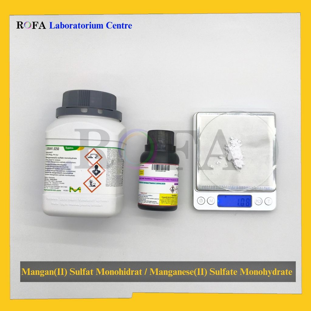 Mangan(II) Sulfat Monohidrat / Manganese(II) Sulfate Monohydrate / MnSO4.H2O Pro Analisis Eceran 1 Gram