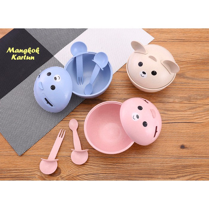 Mangkok KARTUN (Mangkok bentuk kartun, dilengkapi sendok garpu)
