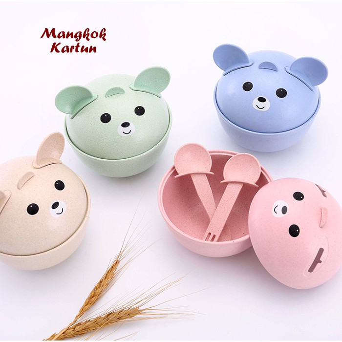 Mangkok KARTUN (Mangkok bentuk kartun, dilengkapi sendok garpu)
