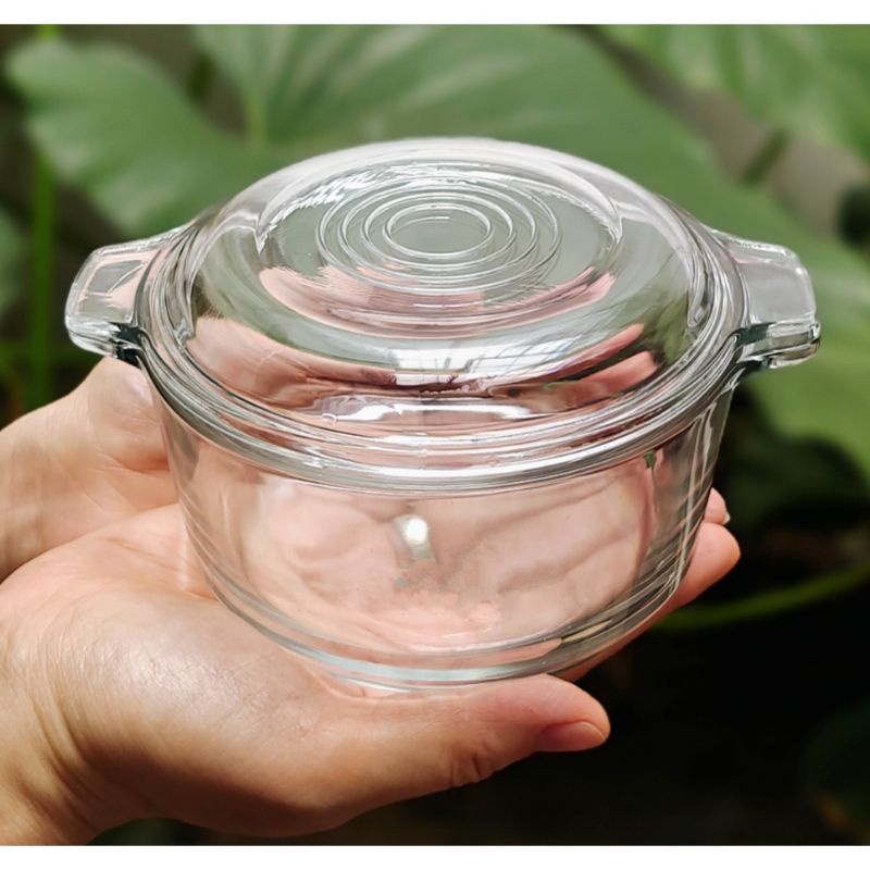 Mangkok Kaca motif + Tutup kaca Serving Bowl Casserole With Lid Mangkuk Kaca Tutup 500 ml