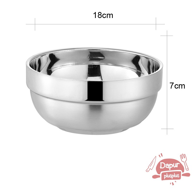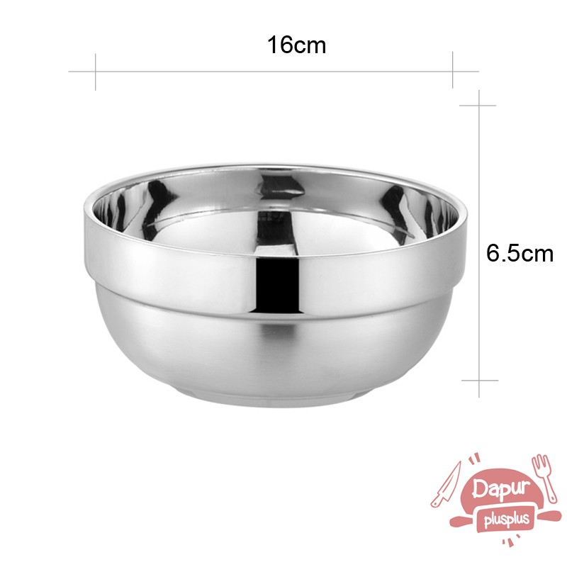 Mangkok Korea Stainless Steel 301 Tebal / Mangkuk Dua Lapis Anti Panas 12/16/18cm