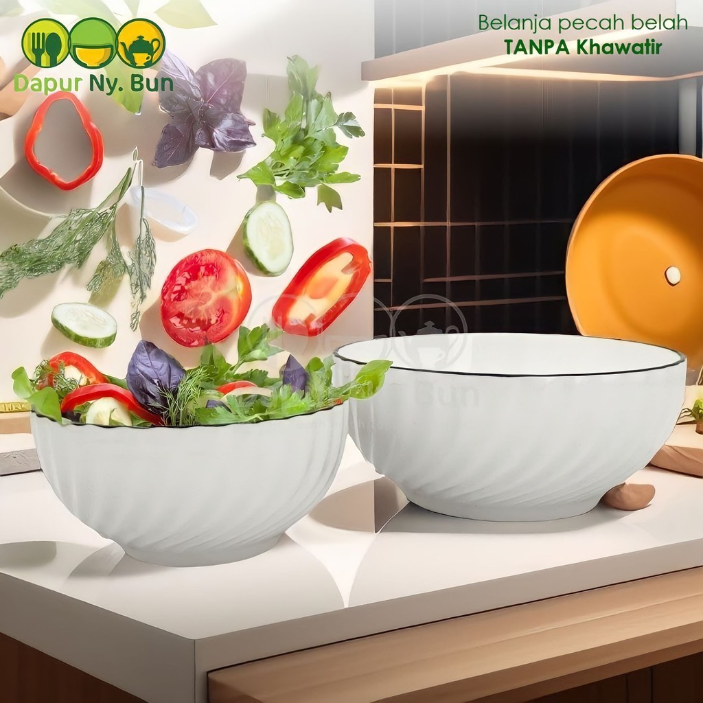 Mangkok Polos Timbul List Hitam Ukuran 6 Inch / Embossed Texture