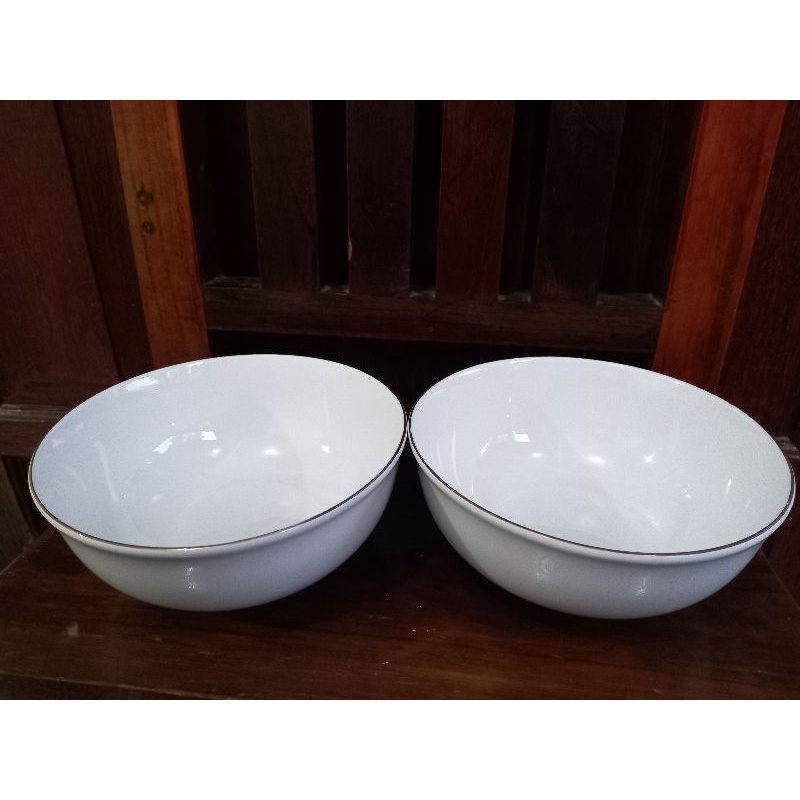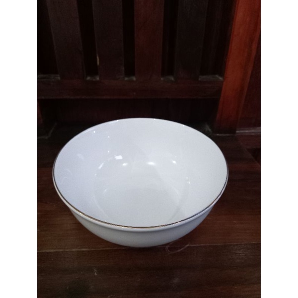 Mangkok Porcelain Merek Indokeramik/Mangkok Keramik List Emas/Mangkok Keramik Microwafe