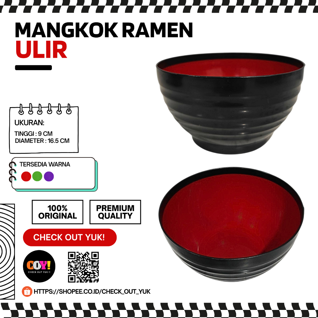 Mangkok Ramen Ulir Plastik Food Grade BPA Free – 1 Set Isi 3 Pcs Diameter 16.5cm Tinggi 9cm (Merah Ungu Hijau)