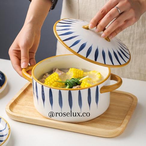 Mangkok tutup 10" mangkok kaca mangkok keramik mangkok unik design korea jepang minimalis bisa untuk oven