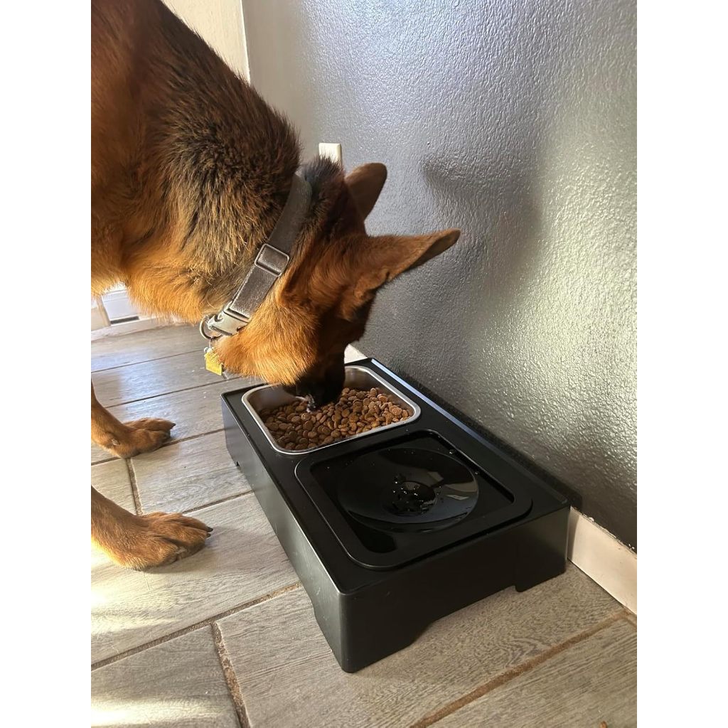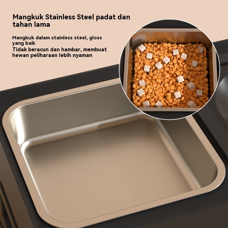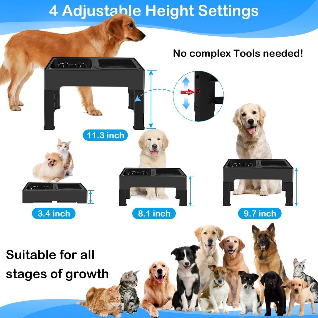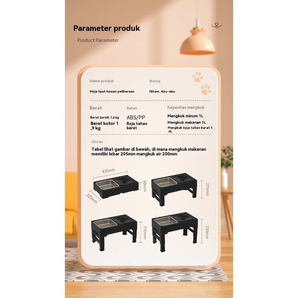 Mangkuk hewan peliharaan stainless steel 2-in-1 yang dapat disesuaikan (dengan dudukan), cocok untuk anjing dan kucing.