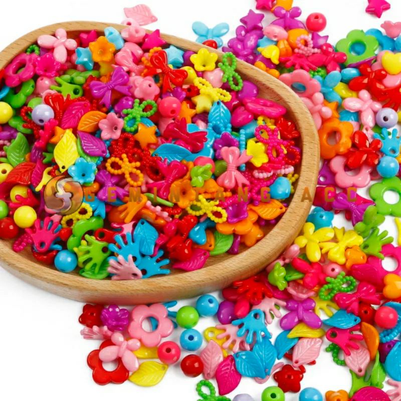 Manik Aneka Bentuk Manik Doff Tua Kuda Poni Bunny Bintang Mote Pastel Warna Solid Bahan Meronce Anak