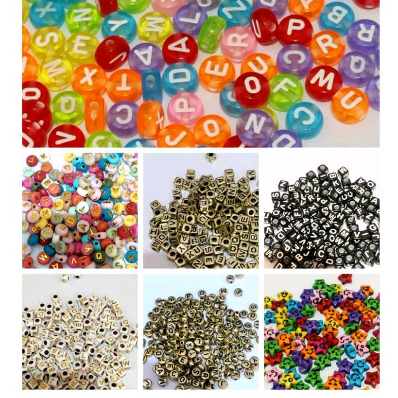 Manik manik Huruf Kotak bahan meronce / Manik huruf kotak ( 15 gram )