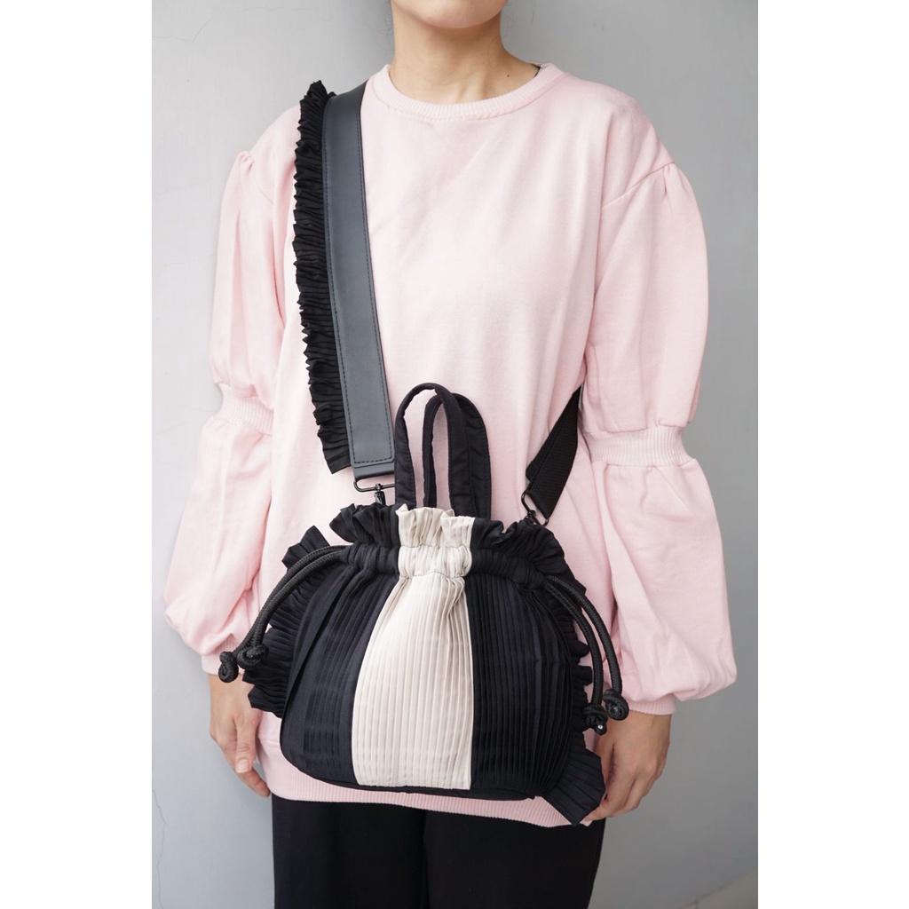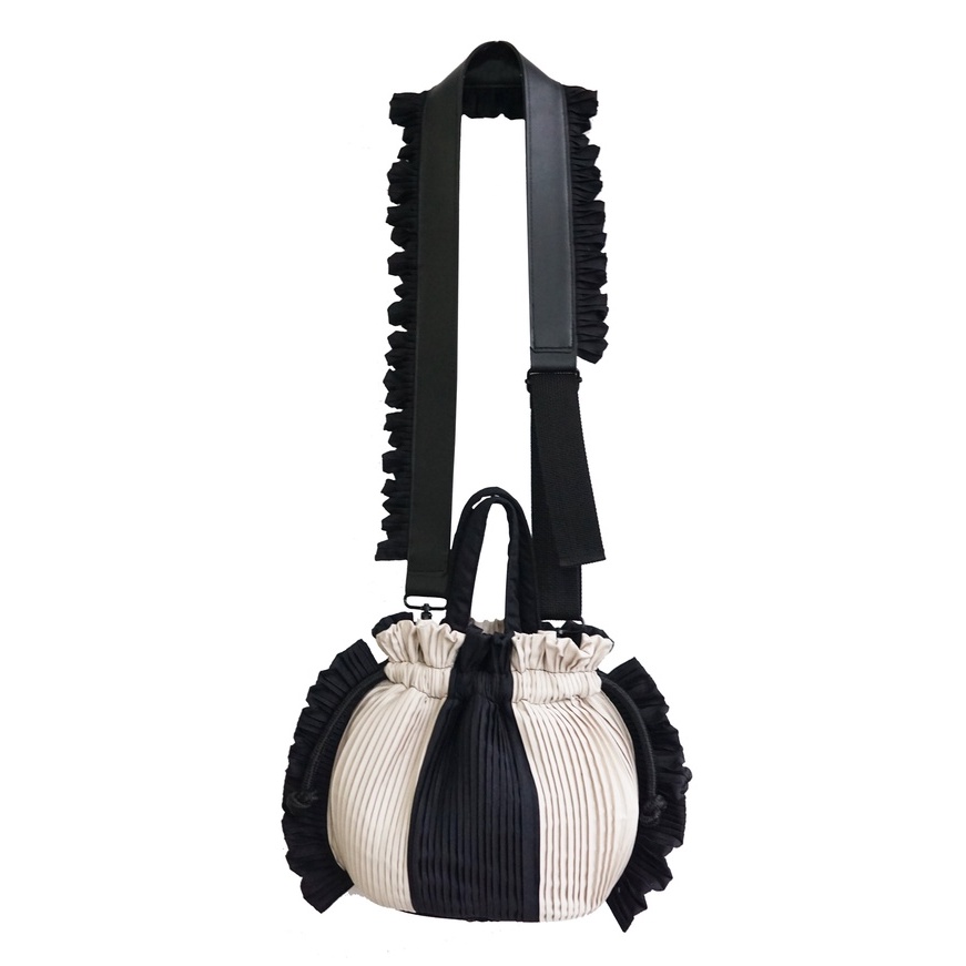 Mannequin Plastic Two Tone Pleated Bucket Bag - Black Cream
