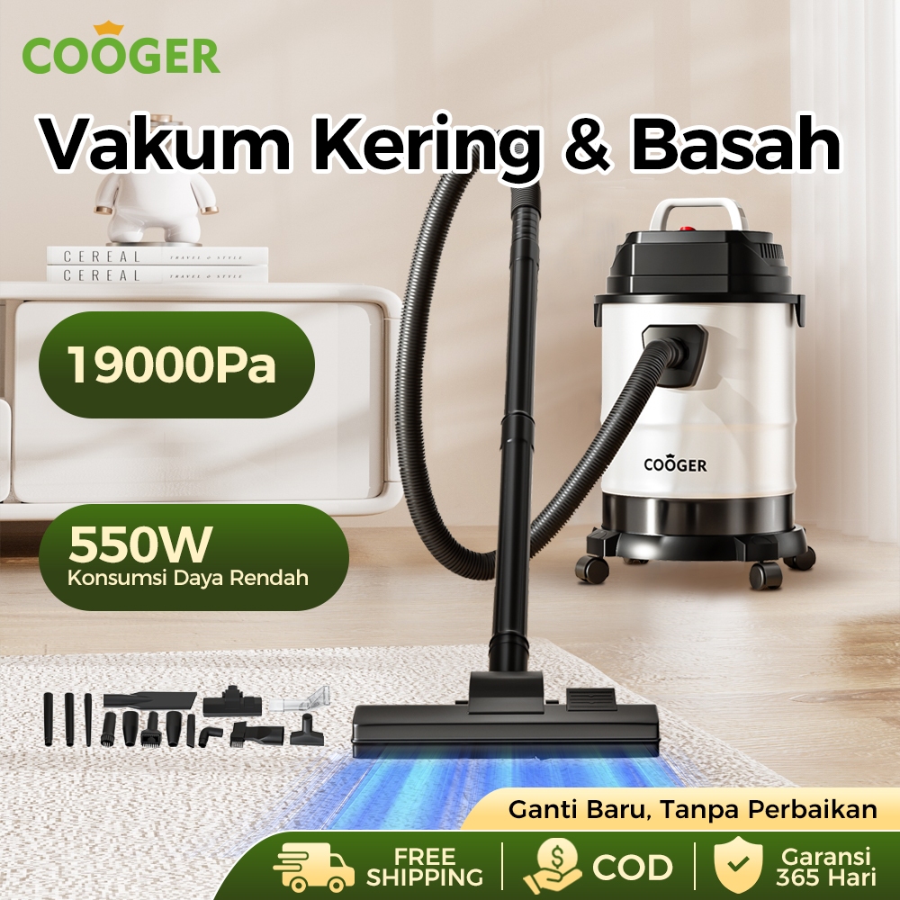 COOGER MEDAN Vacuum Cleaner Hisap Basah Kering Kapasitas 18 Liter & 14 Kepala Aksesori Penyedot Debu Hemat Listrik Vakum Pembersih Rumah Sofa Kasur Karpet Dapur Mobil
