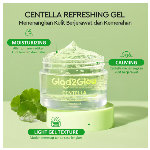 Glad2Glow Centella Allantoin Soothing Moisturizer Gel Repair Skin Barrier Oil-Control Hydrating Moisturizer Cream - Pelembab Wajah (RZEEL)
