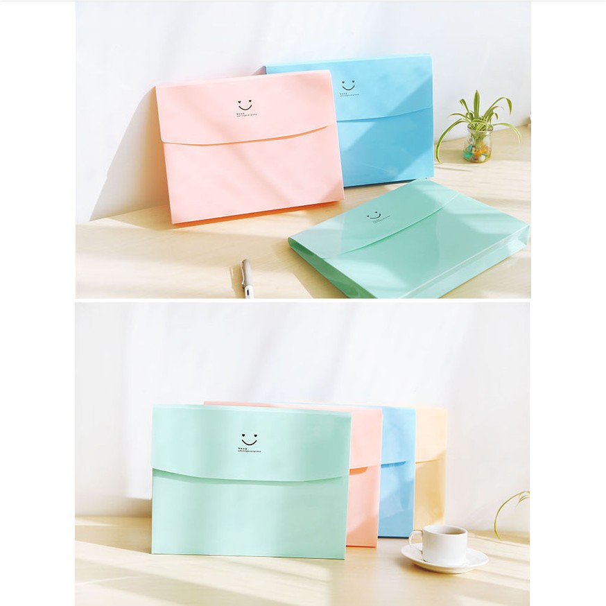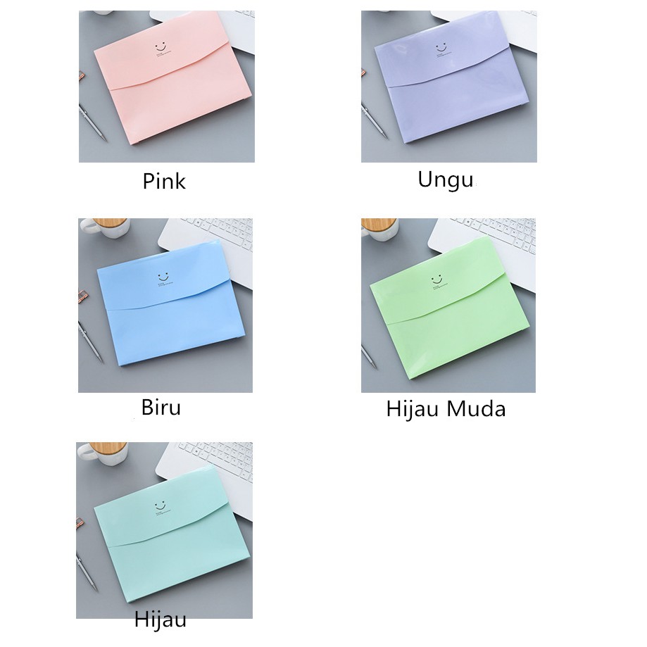 Map A4 Plastik Folder Organizer Paket Kantong Documents Kartun Smiley Warna Permen