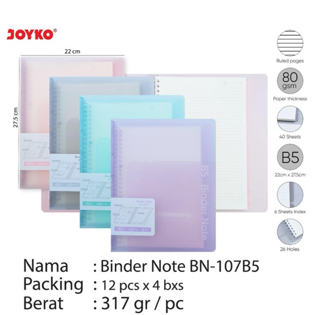 Map Binder Note A5 B5 Warna Polos Transparan / Folder File BN-107A5 dan BN-107B5 Joyko
