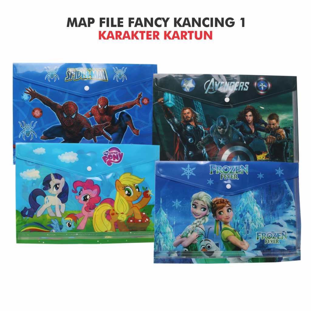 Map File Plastik Penyimpan Berkas Kancing 1 Ukuran Folio Gambar Karakter