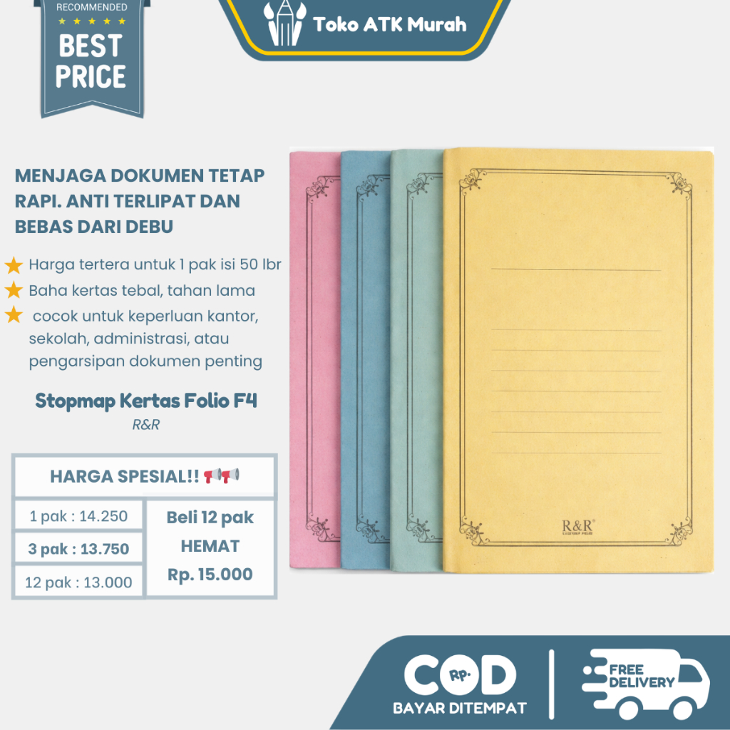 Stopmap Kertas Gand Folio – Map Arsip Dokumen Kantor / Map Surat / Map File Administrasi – 1 Pak Isi 50 Lembar