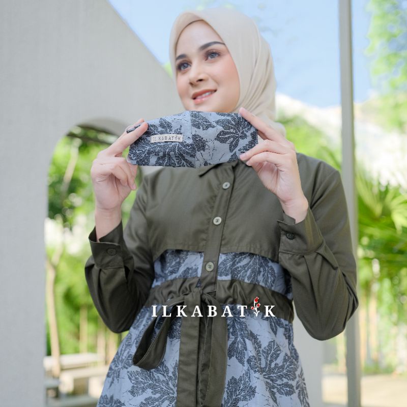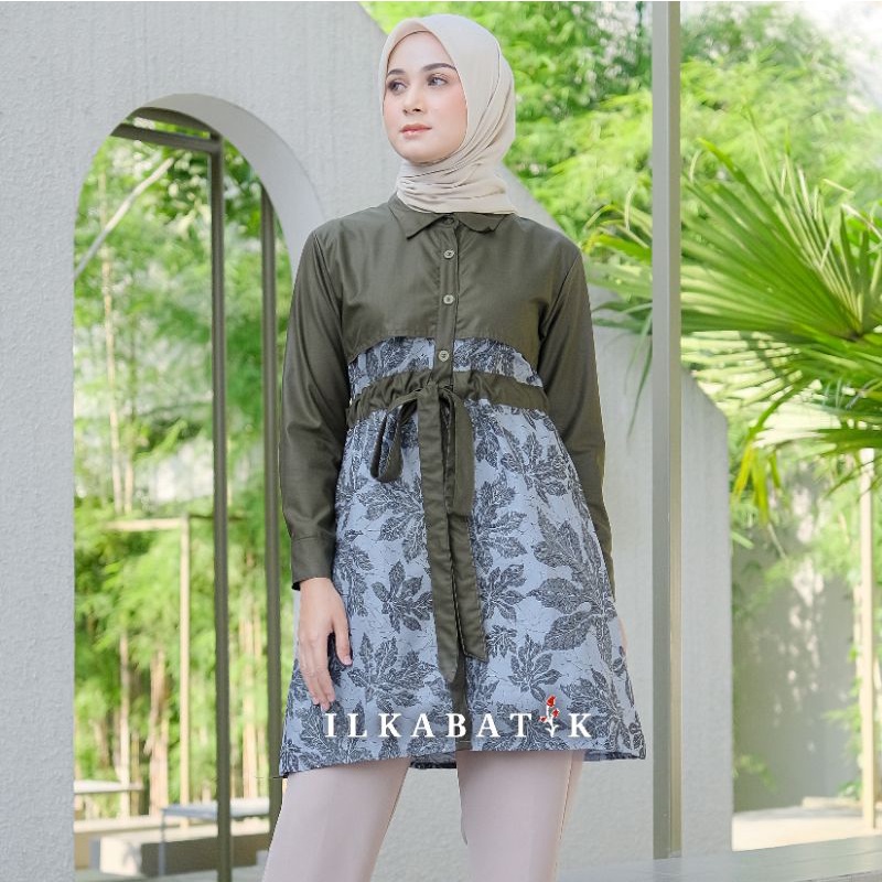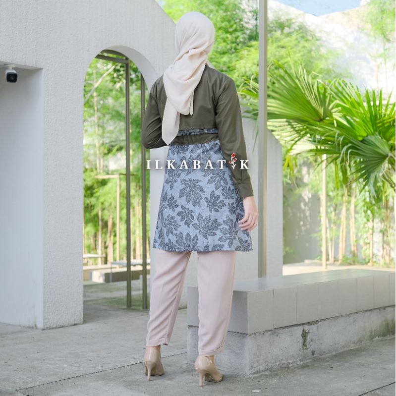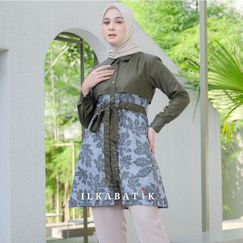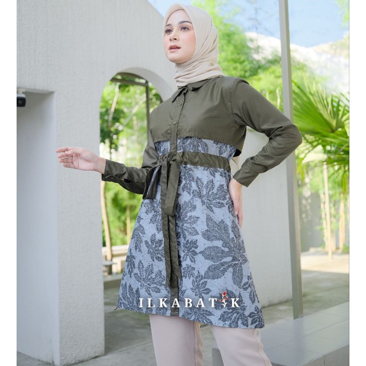 ILKABATIK Maple Tunik Batik Motif Daun Army Batik Wanita Modern Cantik Kantor Seragam Kondangan