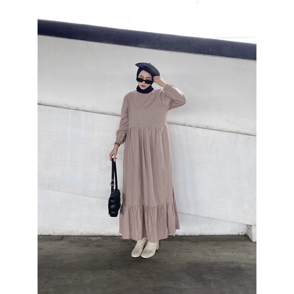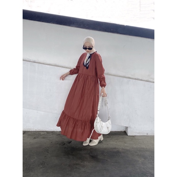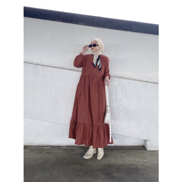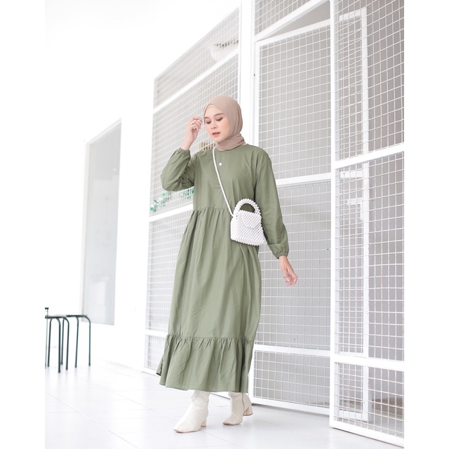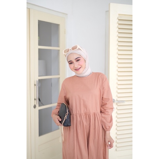 GAYATRI DAILY Marbel Midi Dress - midi dress polos basic banyak warna