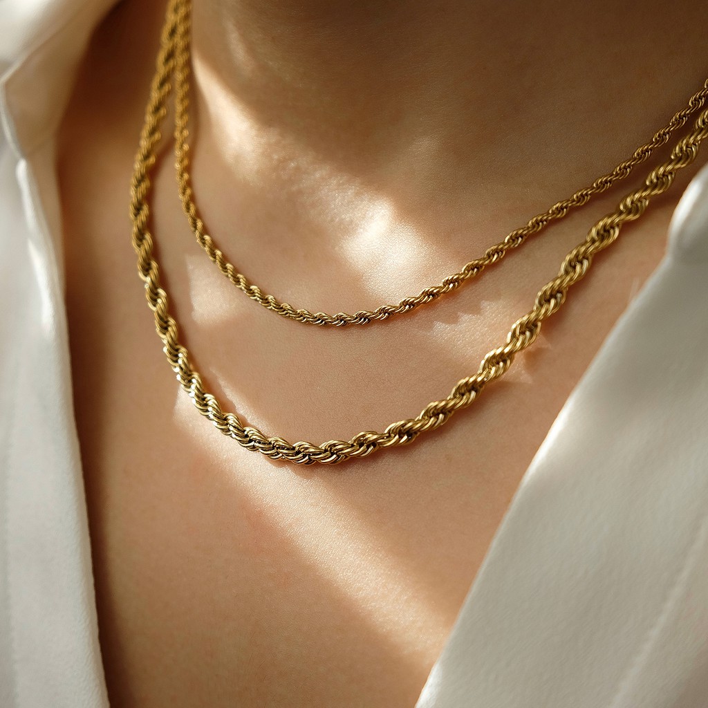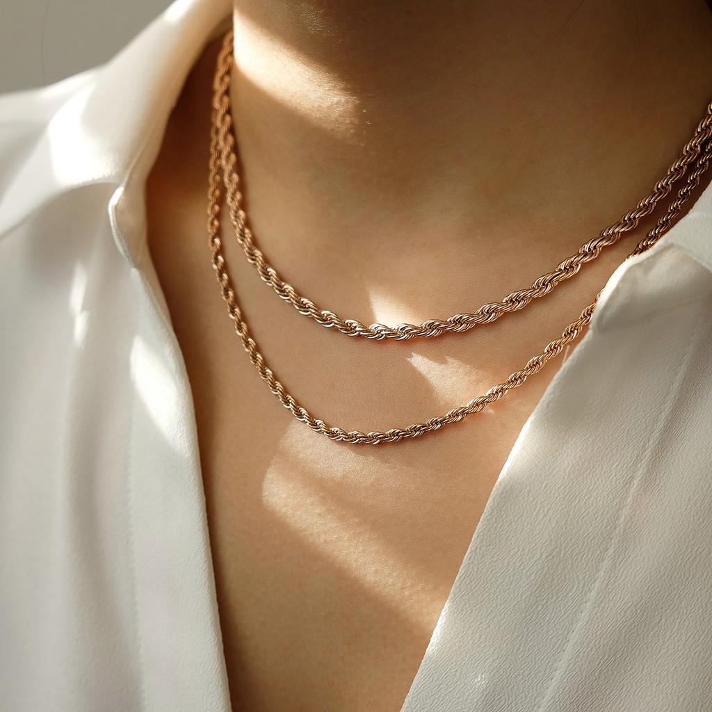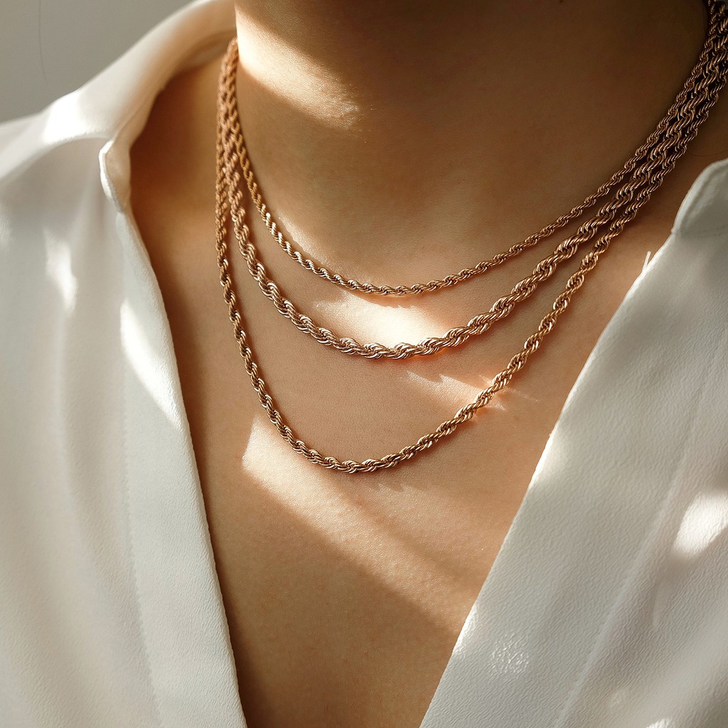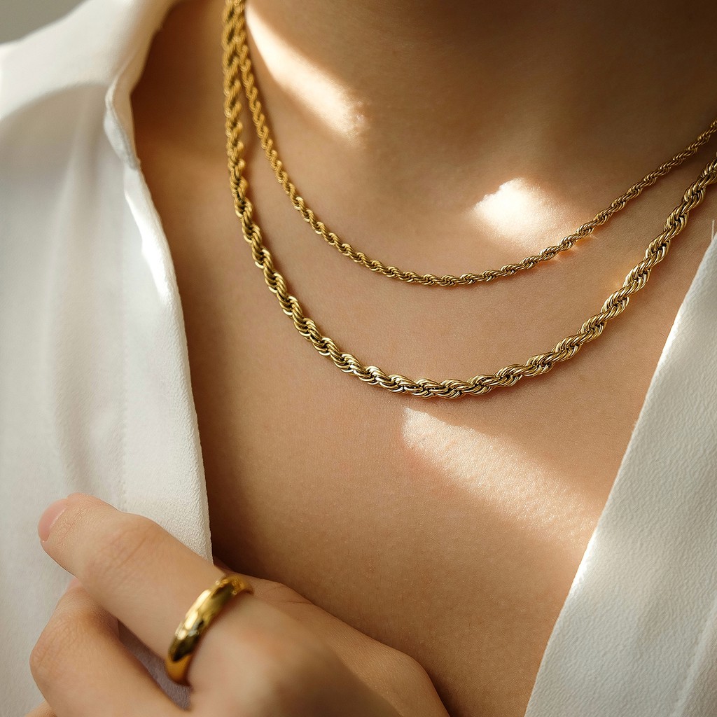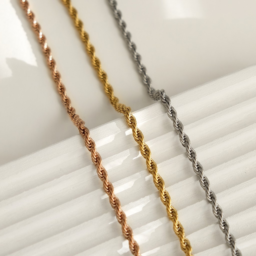 Marina Twist Chain Choker Necklace — Gold Plated Silver Stainless Steel Kalung Choker Anti Karat
