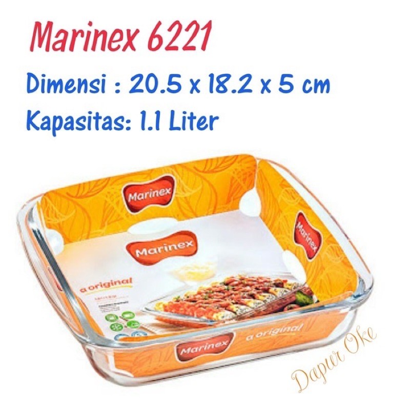 Marinex 6222 Loyang Kaca Segi persegi Oven Safe 6221 Pyrex Piring Saji Kotak Square
