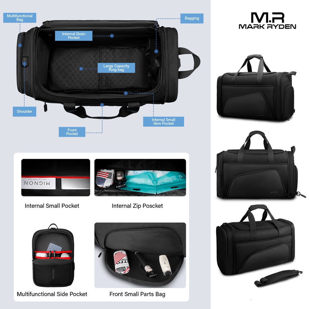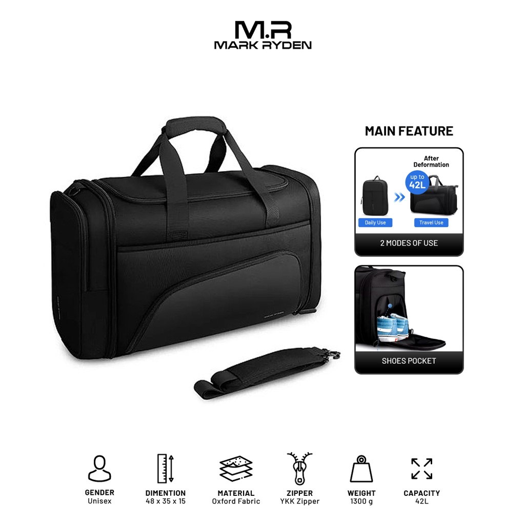 Mark Ryden MR1556 Travel Bag Duffle Luggage Suit - Tas Travel - BLACK