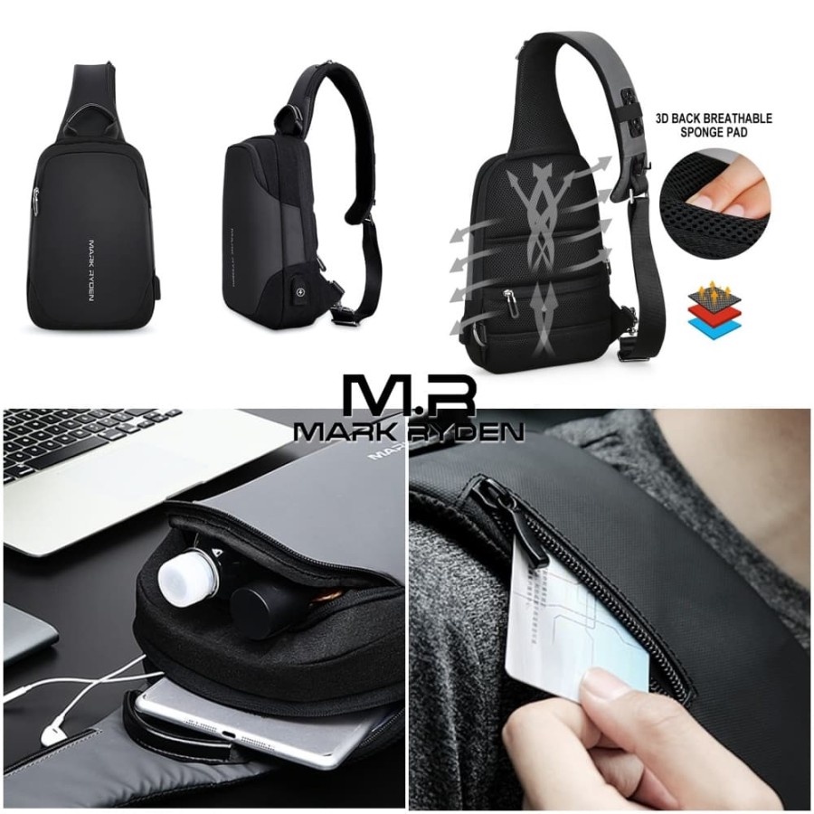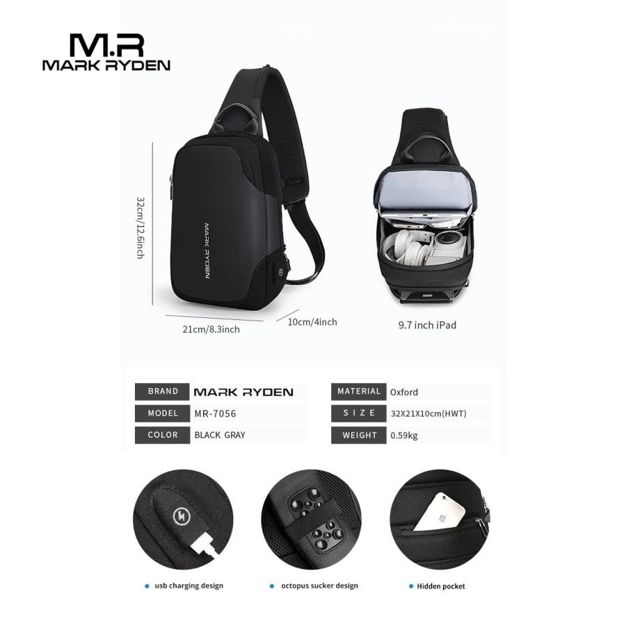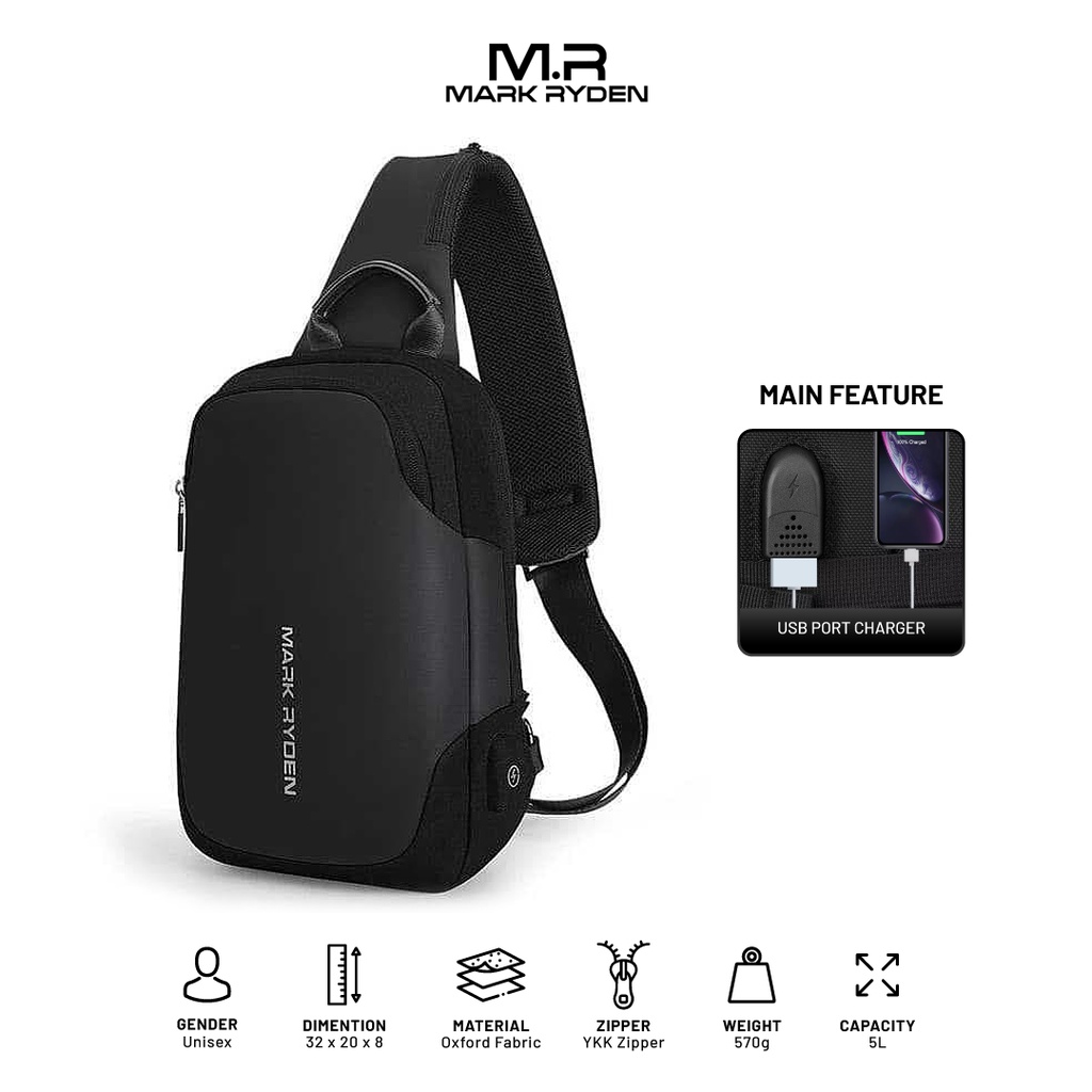 Mark Ryden MR7056 Crossbody Shoulder Bag - Tas Selempang Sling - BLACK