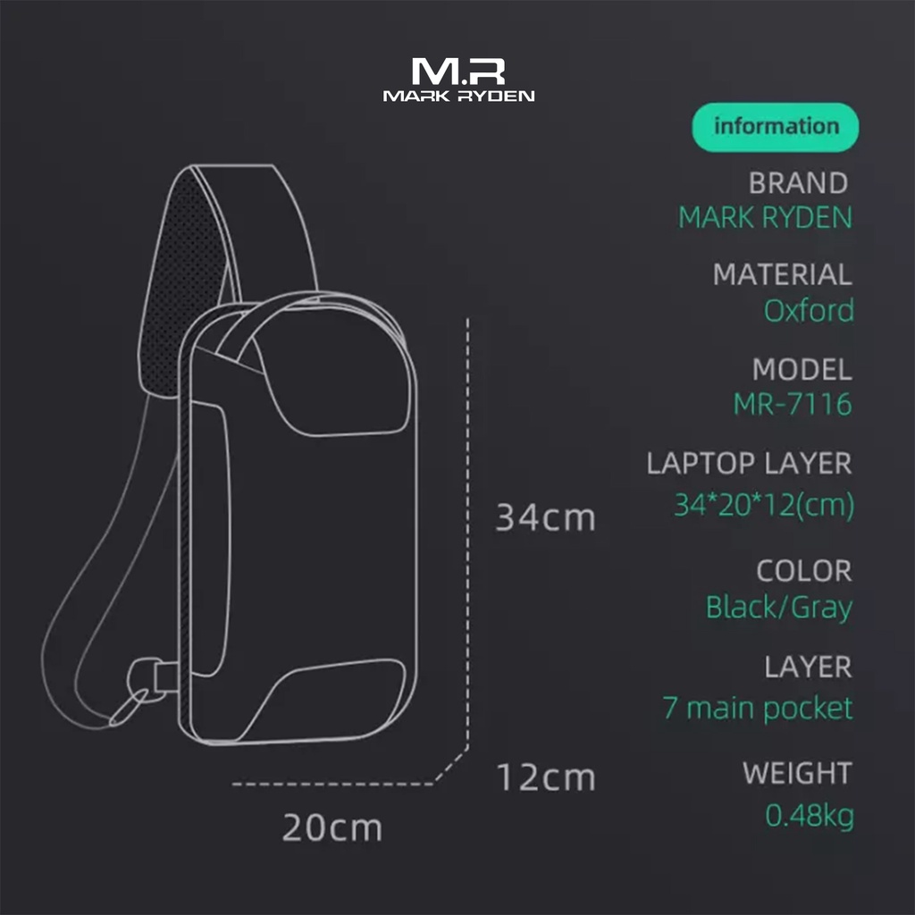 Mark Ryden MR7116 Crossbody Shoulder Bag - Tas Selempang Sling - BLACK
