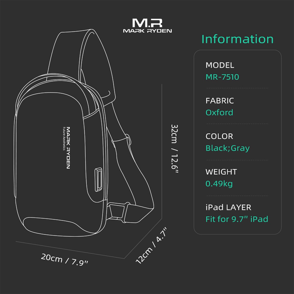 Mark Ryden MR7510 Crossbody Shoulder Bag - Tas Selempang Sling - BLACK