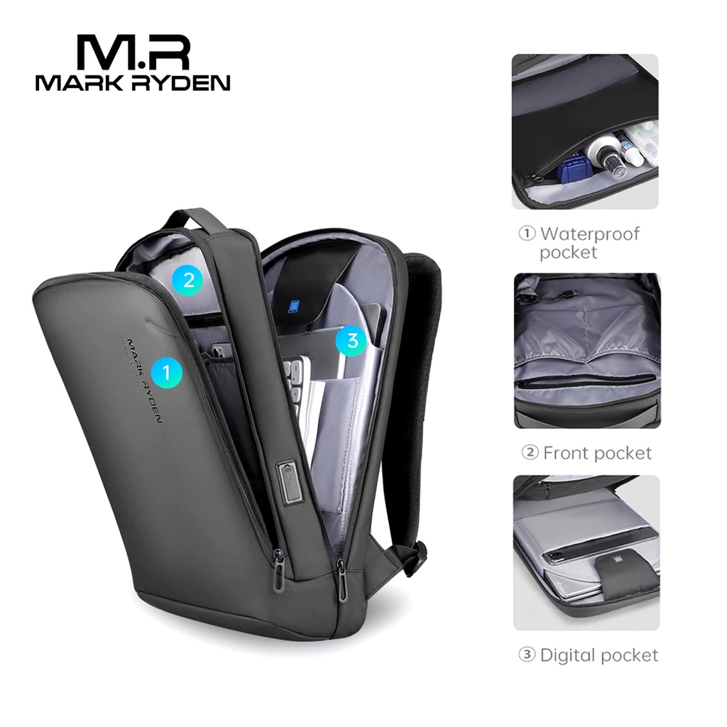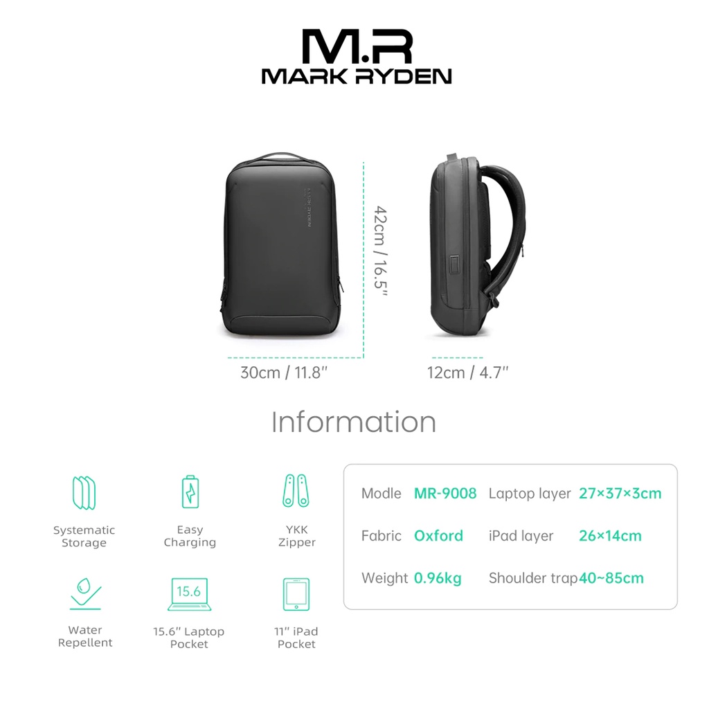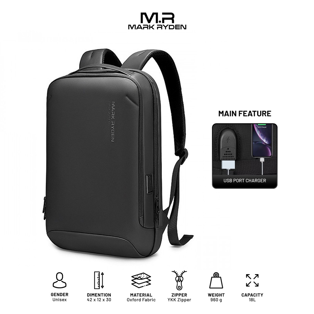 Mark Ryden MR9008 Backpack Bag USB - Tas Ransel Laptop 15.6" - BLACK
