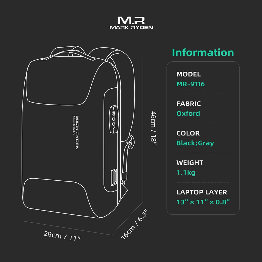 Mark Ryden MR9116 Backpack Bag USB - Tas Ransel Laptop 15" - BLACK