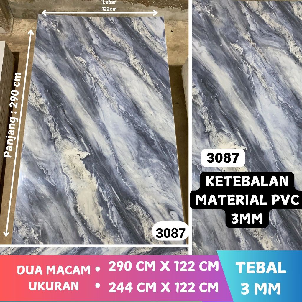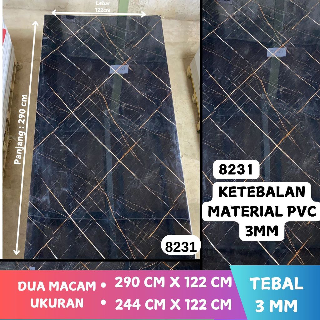 Wallpaper Dinding Kamar Tidur Ruang Tamu Wallpanel PVC 122 x 290x3mm Marmer UV Marble Dekorasi Rumah