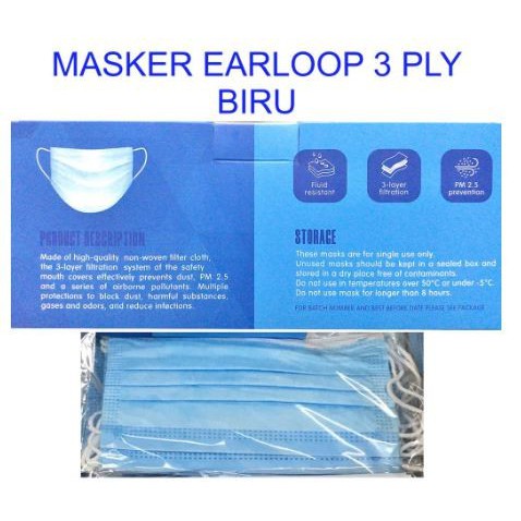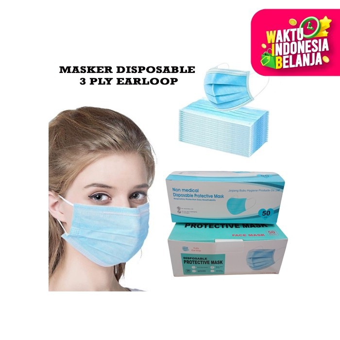 Masker 3 Ply 50pcs Disposable Earloop MURAH - Masker Kesehatan