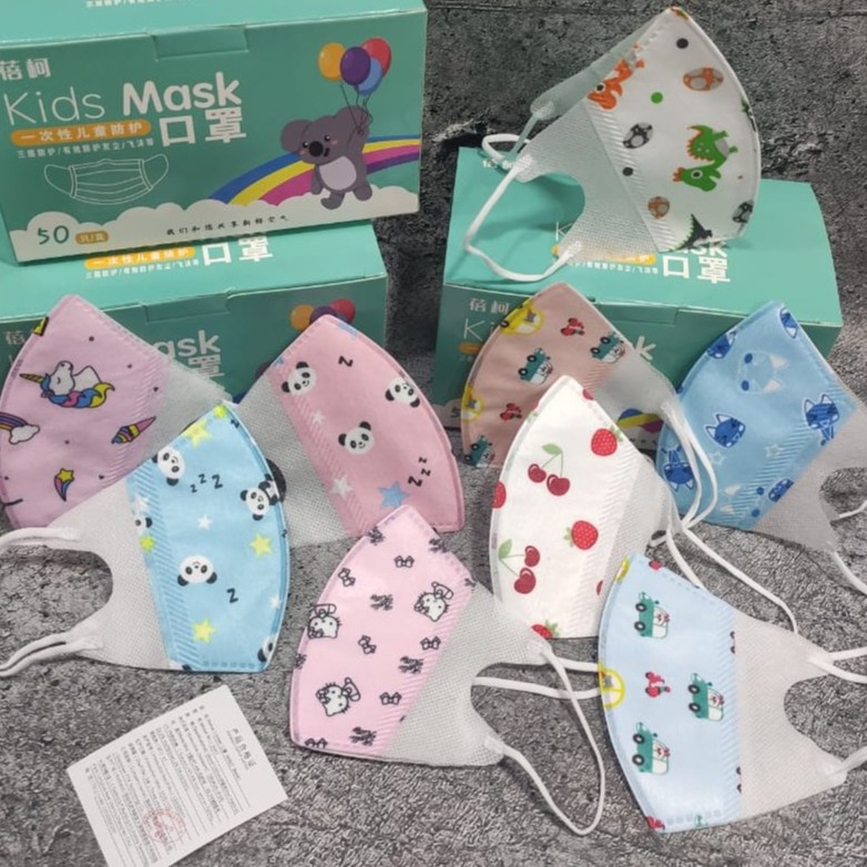 Masker Anak Duckbill isi 10, 20 & 50 pcs Mix Motif - Masker Anak umur 3-12 tahun Disposable