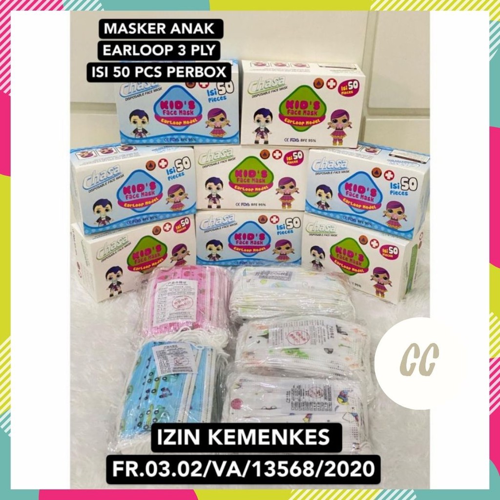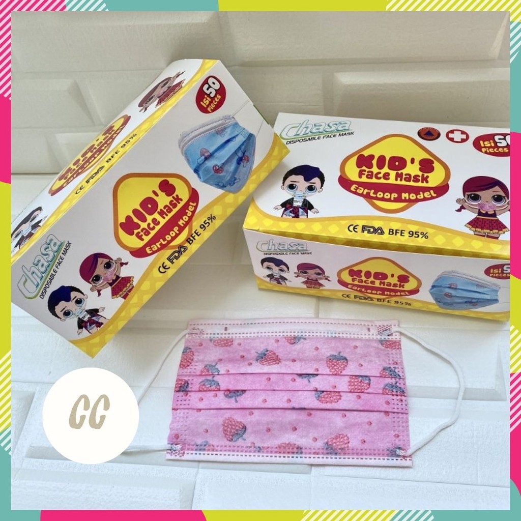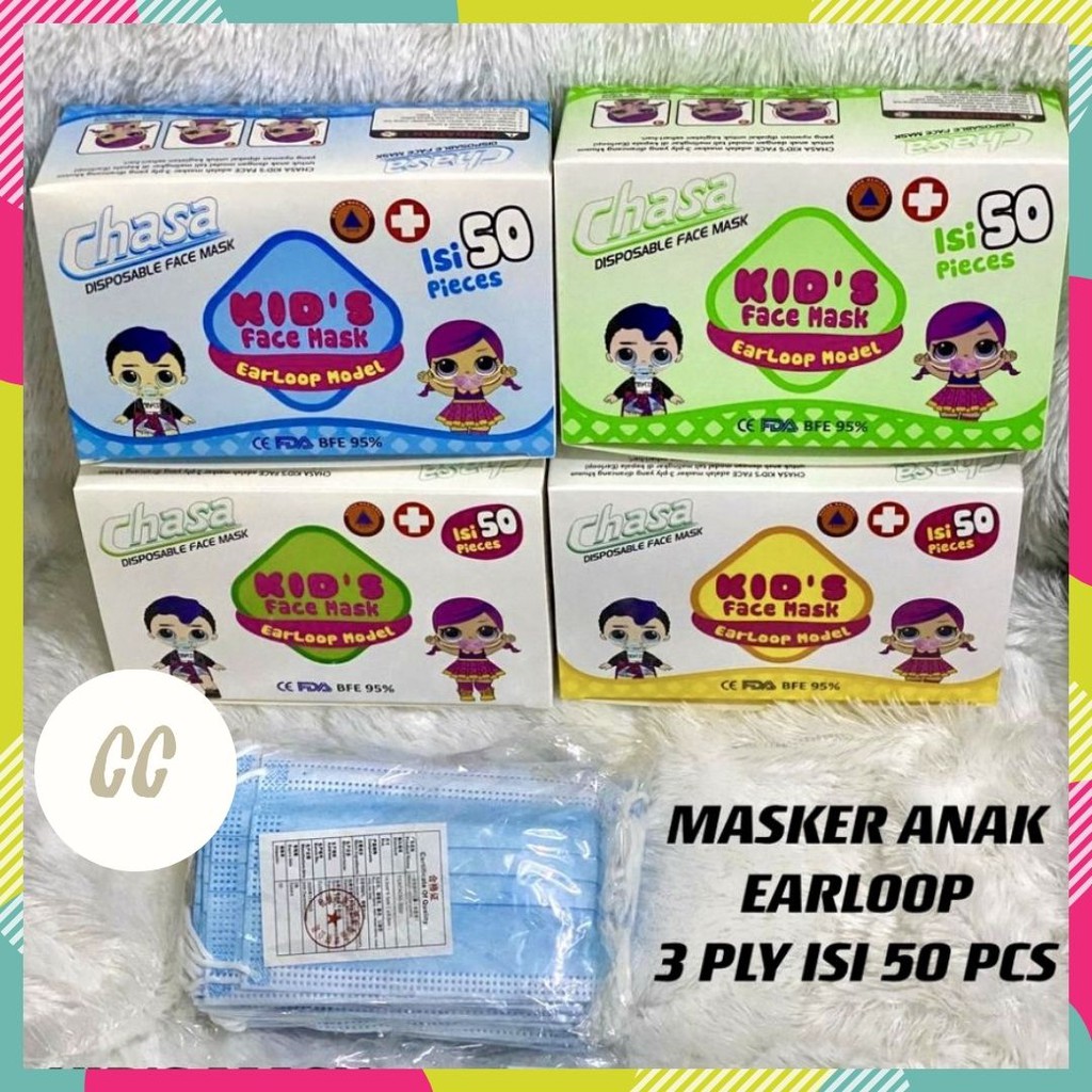 Masker Anak Earloop 3ply isi 50pcs Masker Headloop Anak Masker Hijab Anak Premium Quality Kids Face Mask 3ply Masker Anak Motif Warna Medical Grade Children Mask 3 ply Masker Motif Anak