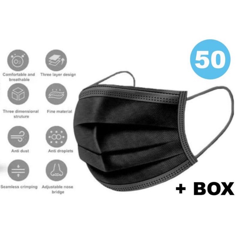 Masker Disposable Earloop Hitam Putih 50pcs