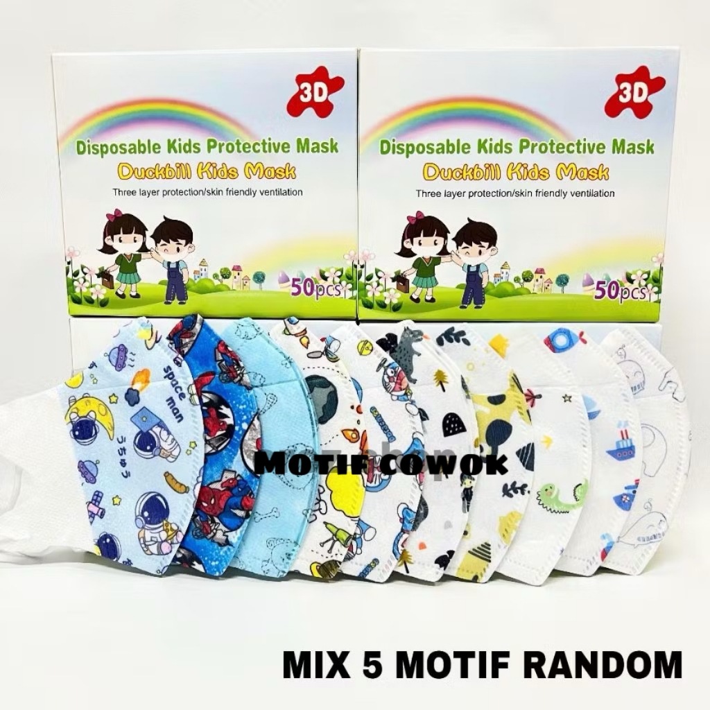 Masker Duckbill Anak Karakter 3-12thn Masker Karakter 3D Duck bill Anak COWO/CEWE