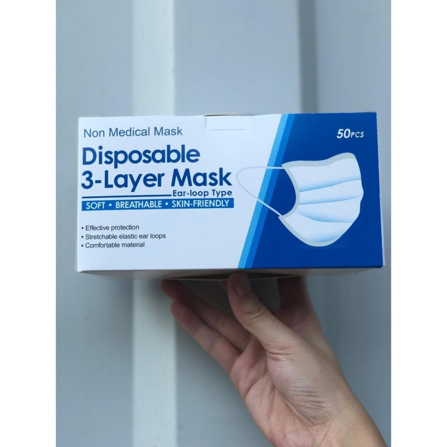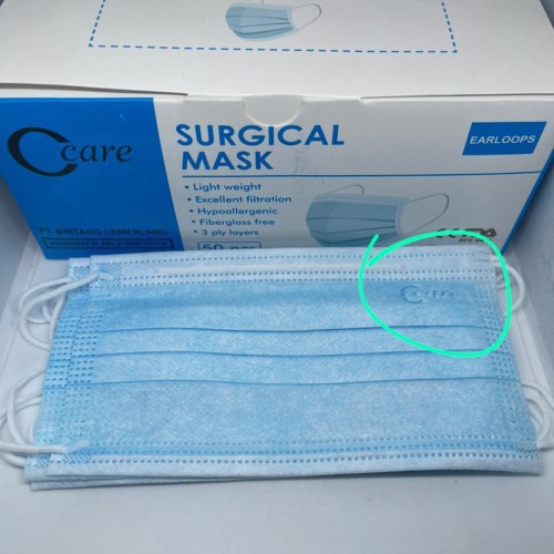 Masker Earloop Disposable 3-Layer Mask 3ply isi 50pcs/ CCare earloop - Biru